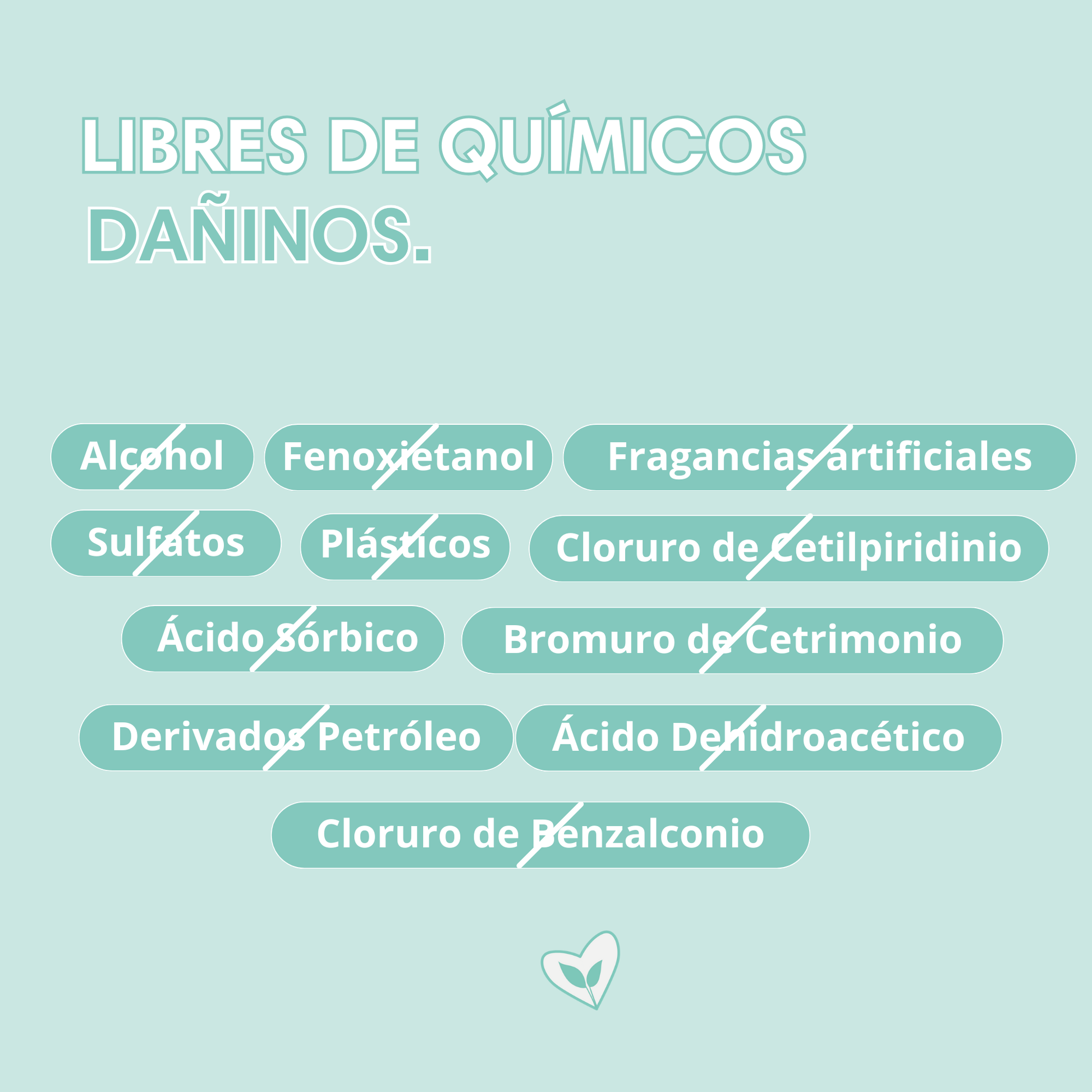 ✔ Sin sulfatos, químicos nocivos, parabenos, plásticos, alcohol y fragancias